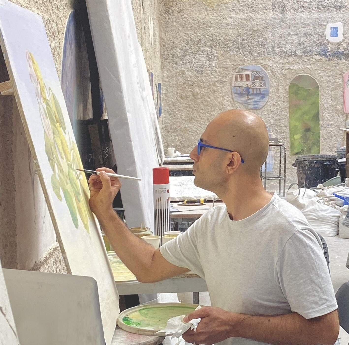 As a continuation of my work in fresco, this series was created using the "fresco" technique, in which the painting is first executed on a still-wet wall. Then, through a specific process, it is detached from the wall and transferred onto another surface. For each painting, I designed a unique shape, and in some pieces, I moved toward the creation of volumes. This exploration represents a new experience for me, rich in challenges and discoveries.